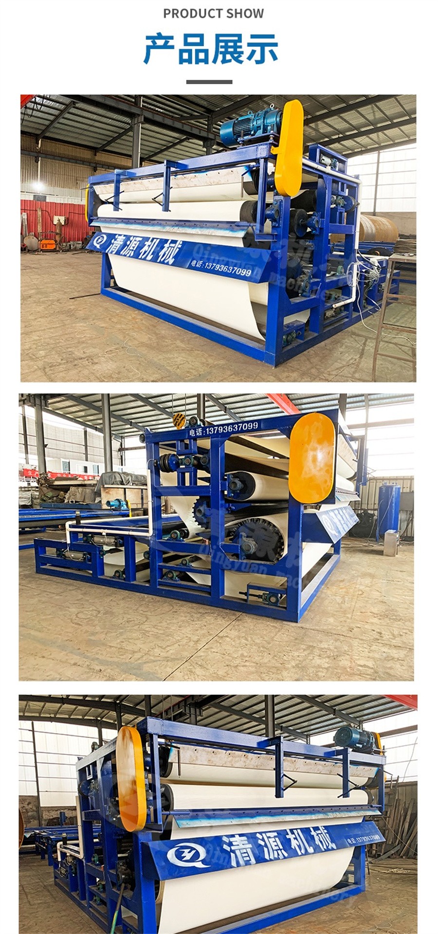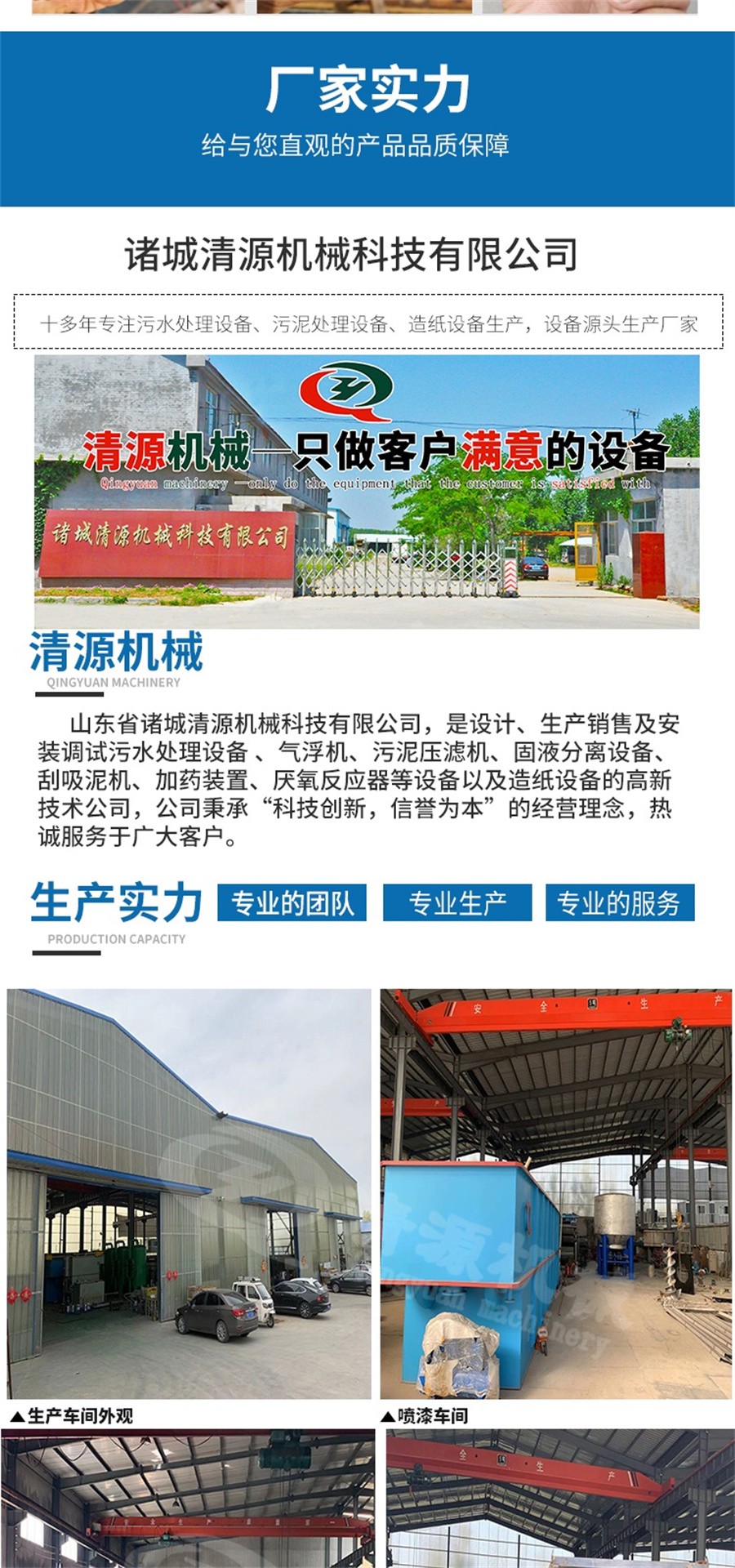 此外,我公司不僅生產帶式壓濾機,還生產板框式壓濾機、氣浮設備、固液分離設備、刮吸泥機、造紙設備等其他環保設備。